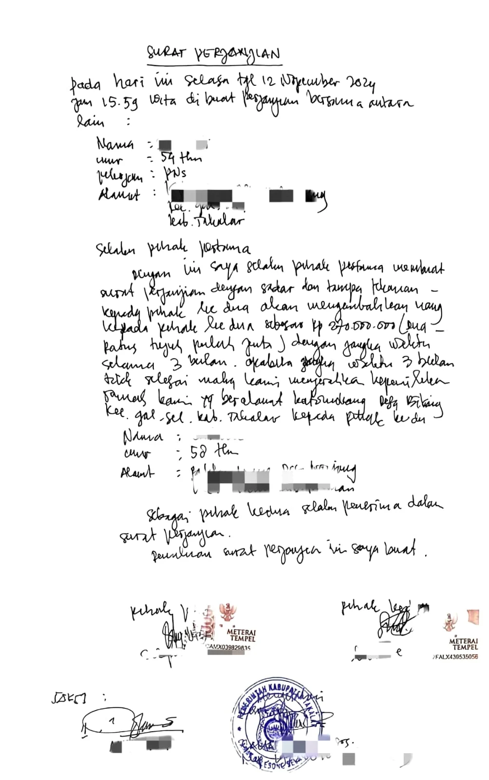 Hingga berita ini disusun, belum ada penetapan status hukum terhadap pihak-pihak yang disebutkan. Seluruh informasi disajikan berdasarkan keterangan korban, dokumen yang diperlihatkan, serta penelusuran tim media.