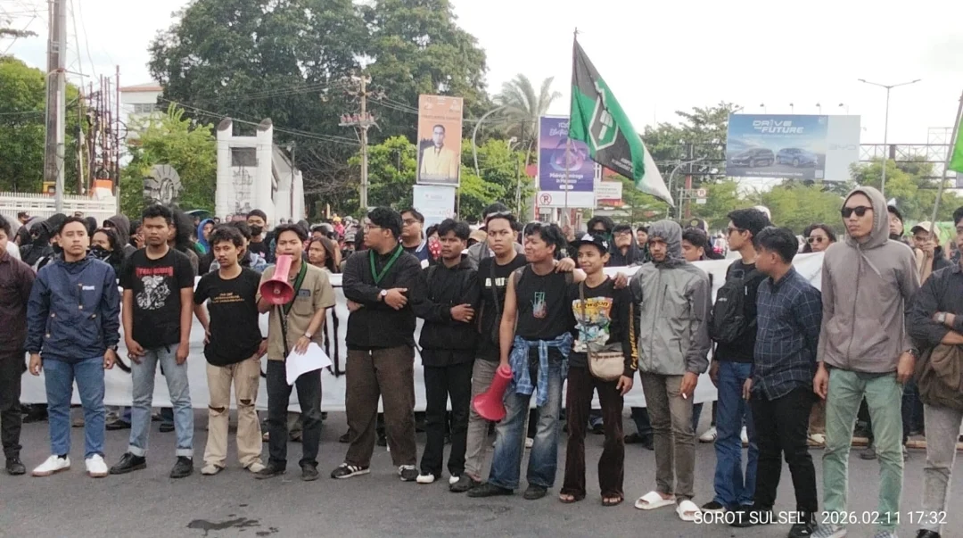 Fatihmedianusantara.com Makassar Sulsel, – Himpunan Mahasiswa Islam (HMI) Komisariat Universitas Negeri Makassar (UNM) menggelar aksi unjuk rasa di depan Kampus UNM, Jalan Andi Pangeran Petarani, Kota Makassar, Rabu 10 Februari 2026 Kota Makassar.