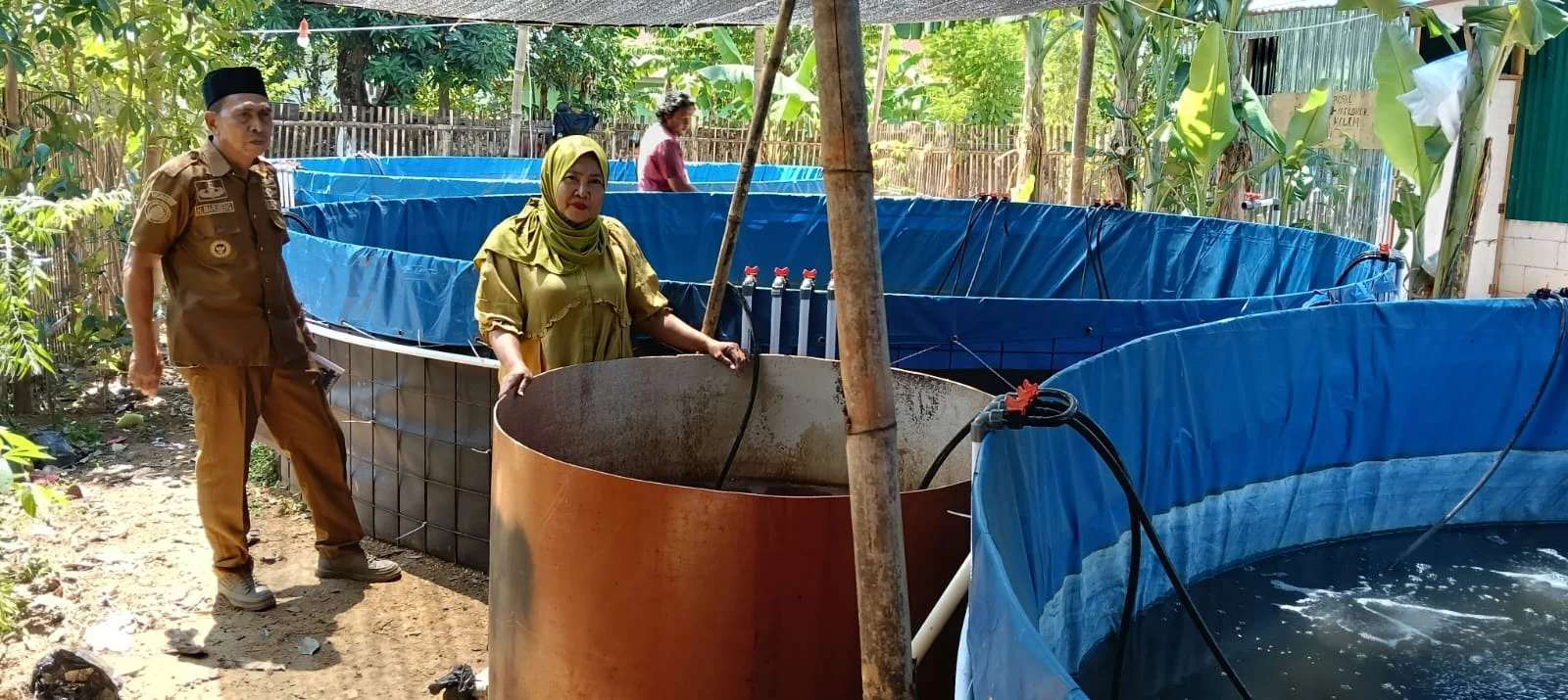Bersama Ketua TP PKK Hj Marwiyah Kepala Desa mengajak awak media meninjau kolam-kolam ikan program ketahanan pangan desa.