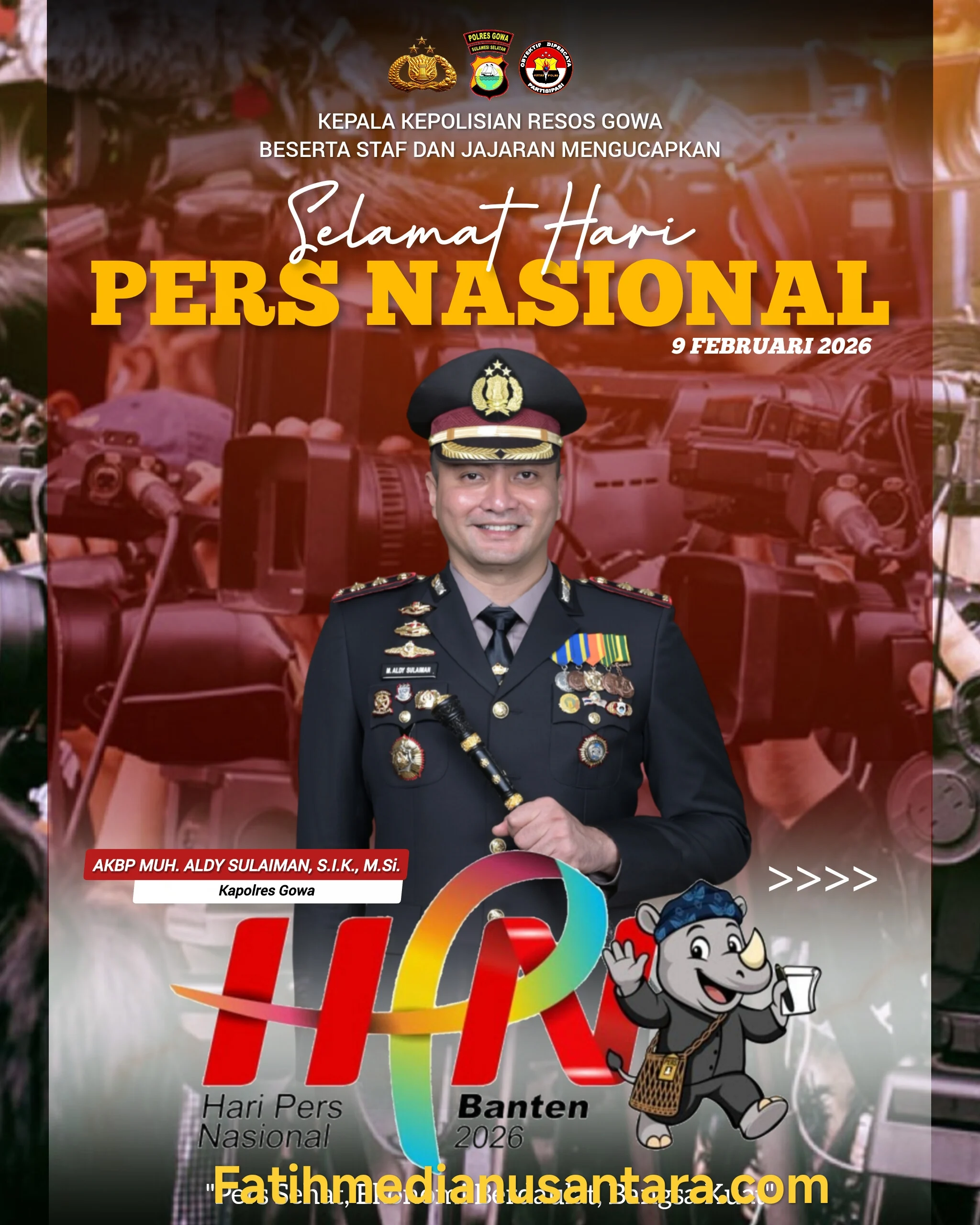 Fatihmedianusantara.com Gowa Sulsel, – Kepala Kepolisian Resor Gowa, Akbp Muhammad Aldy Sulaiman, S.I.K., M.Si, bersama staf dan seluruh jajaran Polres Gowa menyampaikan ucapan Selamat Hari Pers Nasional (HPN) yang diperingati pada 9 Februari 2026. Senin, 09/02/2026.