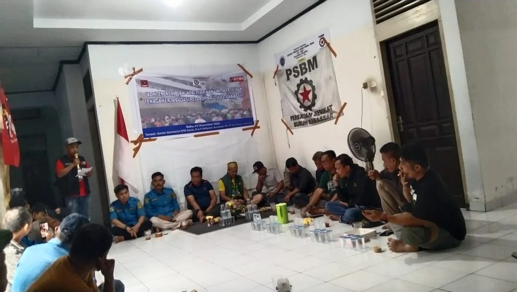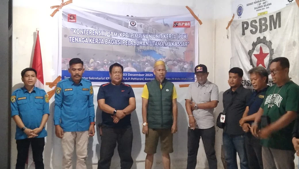 Fatihmedianusantara.com Makassar Sulsel, – Konferensi I Pimpinan Unit Kerja (PUK) Tenaga Kerja Bagasi Pelabuhan Utama Makassar resmi digelar pada Rabu, 3 Desember 2025, di Sekretariat KPBI Sulawesi Selatan. Agenda penting ini menjadi sorotan publik nasional karena berlangsung di tengah meningkatnya kritik terhadap tata kelola dan hubungan industrial di Pelabuhan Soekarno Hatta Makassar.