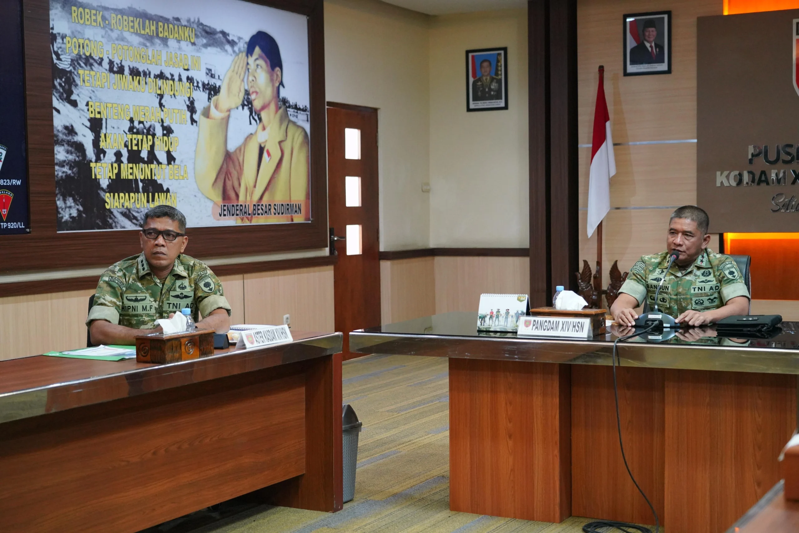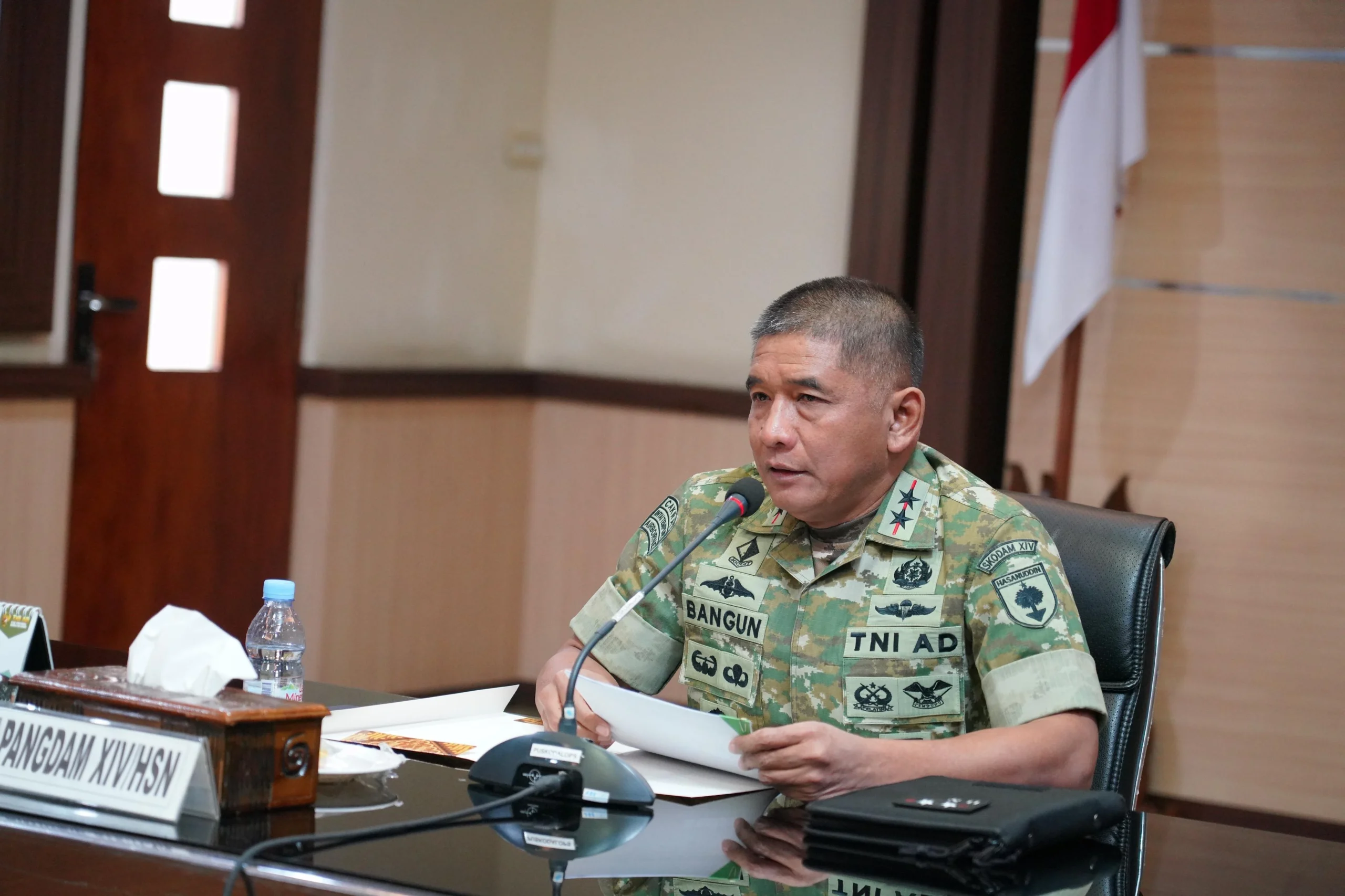 Hal tersebut disampaikan saat mengikuti Rapat Evaluasi Lanjutan yang dipimpin Kepala Staf Teritorial (Kaster) TNI, Bambang Trisnohadi, melalui Video Conference (Vicon) dari Ruang Vicon Puskodalops Makodam, Jalan Urip Sumoharjo, Makassar, Selasa (14/4/2026).