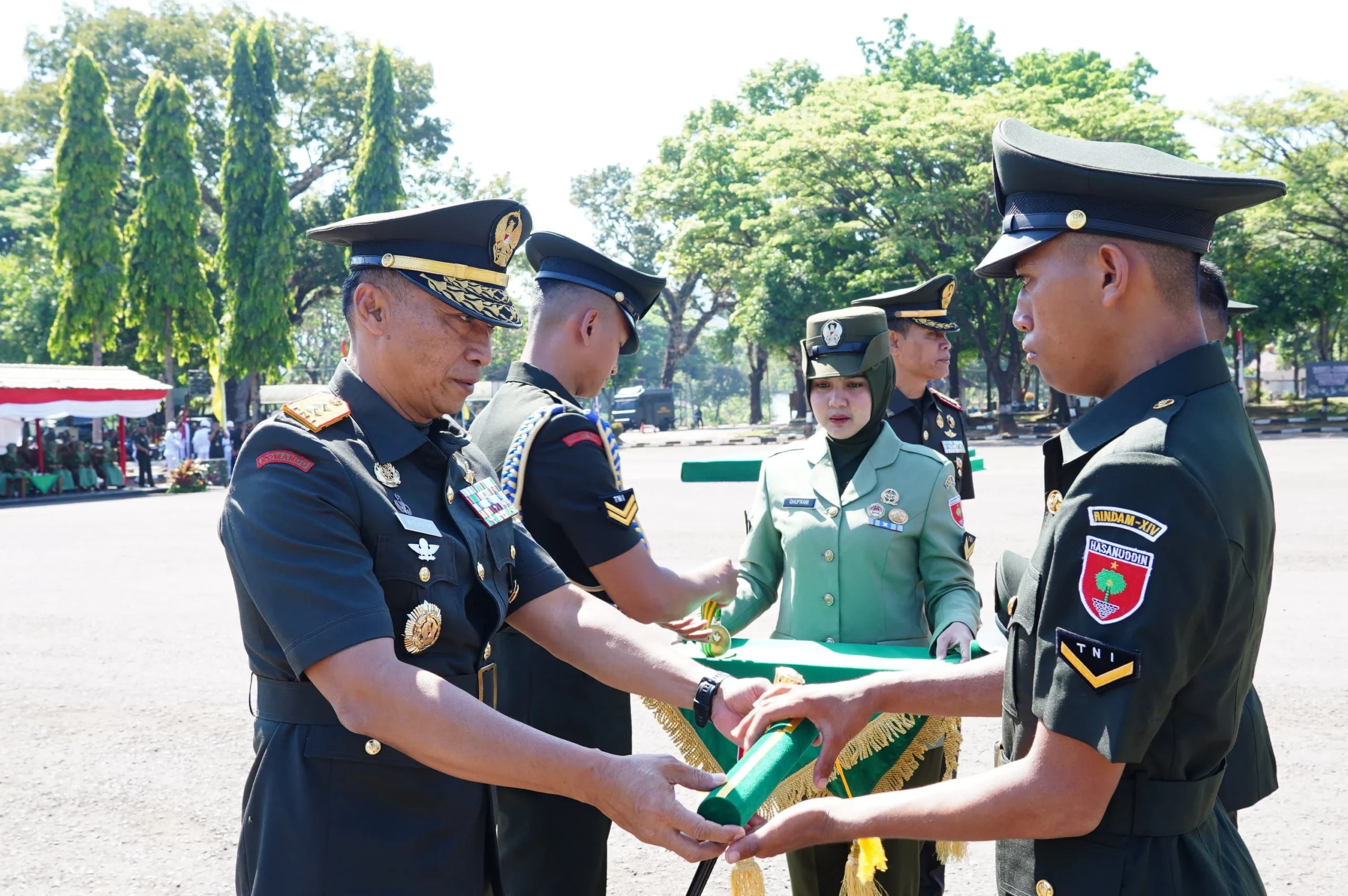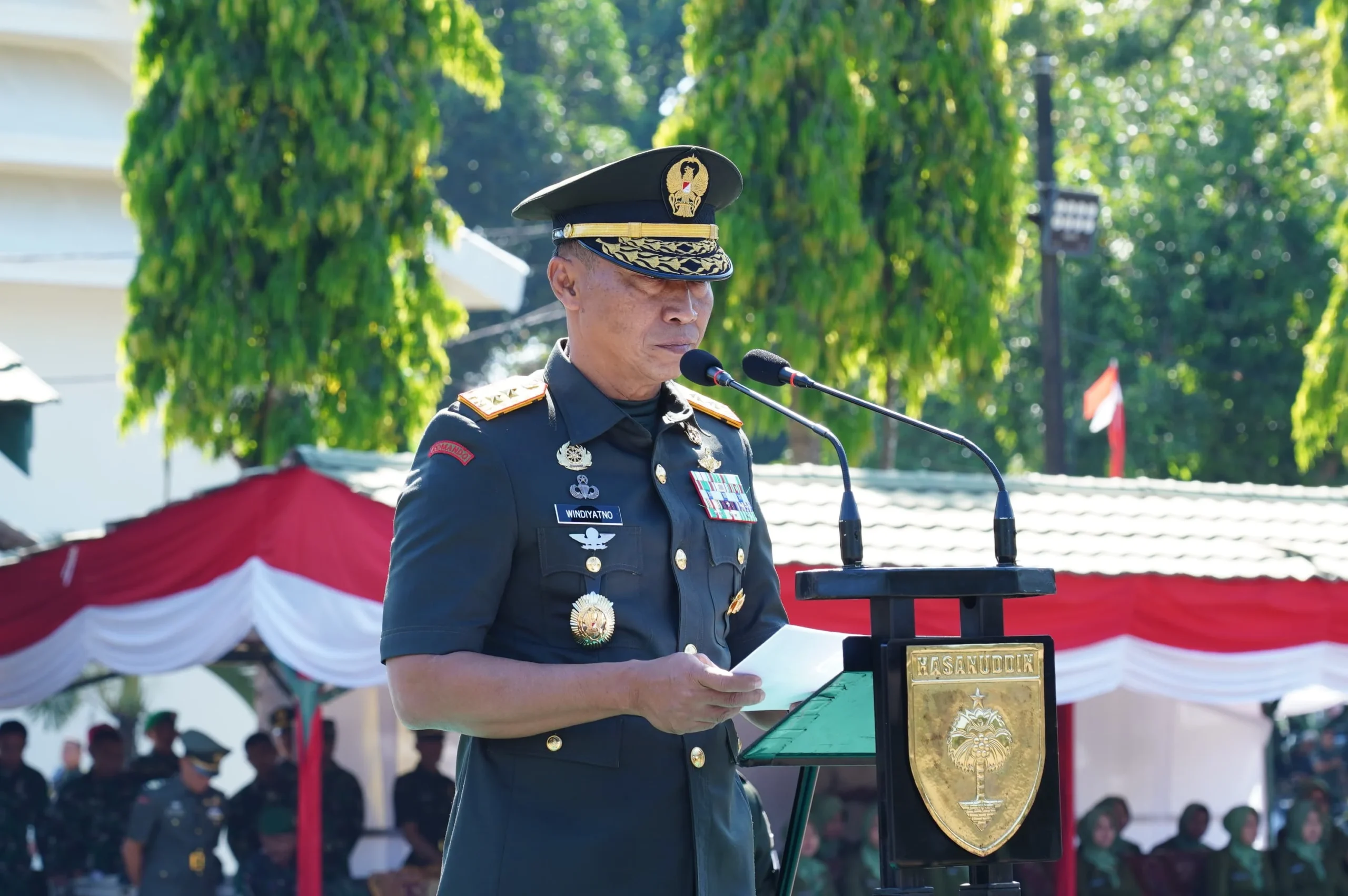 Pakatto, Gowa fatihmedianusantara Sulsel, – Pangdam XIV/Hasanuddin Mayjen TNI Windiyatno memimpin Upacara Penutupan Pendidikan Pertama Bintara (Dikmaba) TNI AD Tahun Anggaran 2025 yang digelar di Lapangan Sapta Marga Rindam XIV/Hasanuddin, Jalan Malino, Pakatto, Kabupaten Gowa, Sabtu, 06/09.2025.