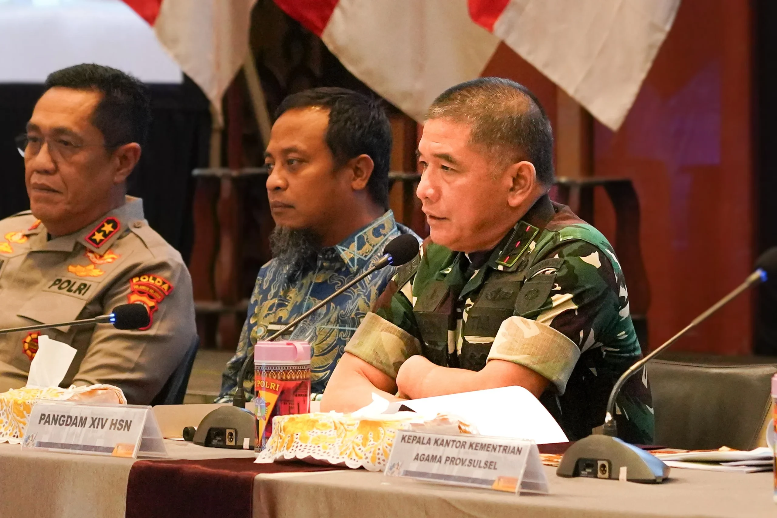 Pada kesempatan ini, Pangdam memaparkan kesiapan Kodam XIV/Hsn dalam mendukung pengamanan Idul Fitri 1447 H. Ia menjelaskan sejumlah potensi ancaman yang perlu diantisipasi bersama, di antaranya konflik sosial, kemacetan lalu lintas, hingga kemungkinan terjadinya bencana alam. Untuk mendukung pengamanan tersebut, Kodam XIV/Hsn menyiapkan sebanyak 8.286 prajurit yang siap bersinergi dengan seluruh unsur pengamanan di lapangan.