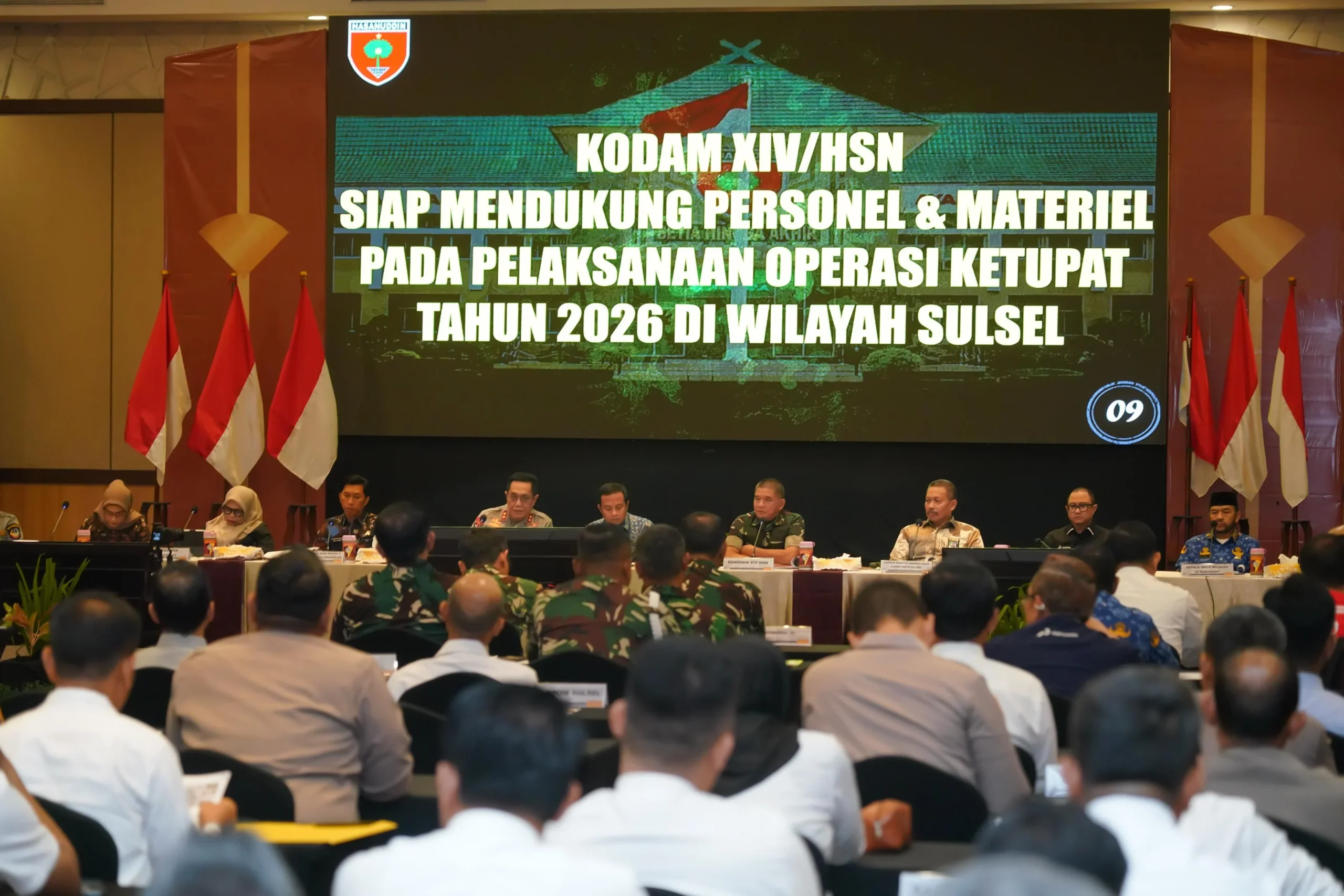 Fatihmedianusantara.com Makassar – Pangdam XIV/Hasanuddin Mayjen TNI Bangun Nawoko menghadiri Rapat Koordinasi (Rakor) Lintas Sektoral dalam rangka Kesiapan Operasi Kepolisian Terpusat Ketupat – 2026 Pengamanan Hari Raya Idul Fitri 1447 H, bertempat di Hotel Harper, Jl. Perintis Kemerdekaan, Kota Makassar. Kamis, (5/3/2026).