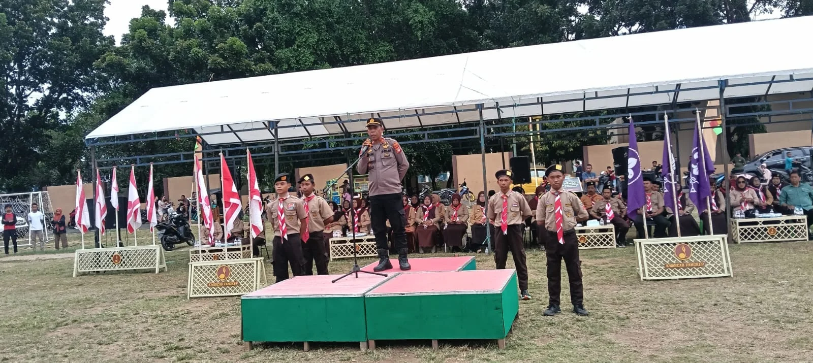 Pangkep – Upacara pembukaan perkemahan Pramuka Kemerdekaan tingkat Kwartir Ranting Kecamatan Minasatene dilaksanakan di Lapangan Sepak Bola Minasatene Kecamatan Minasatene Kabupaten Pangkajene dan kepulauan pada Minggu, 24 Agustus 2025